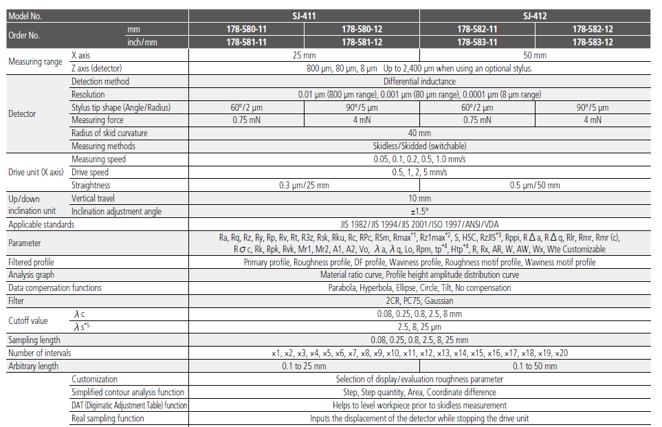 - You can store up to 10 different measuring conditions inside the SJ-410, and up to 500 with an optional SD card